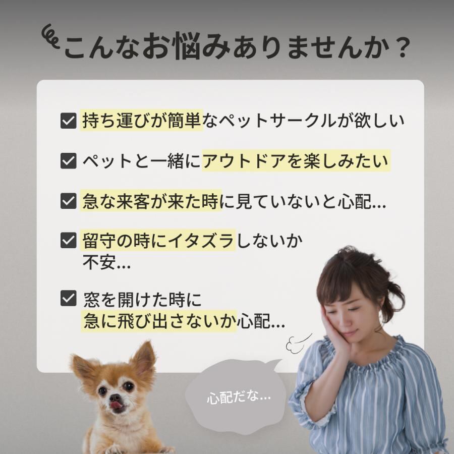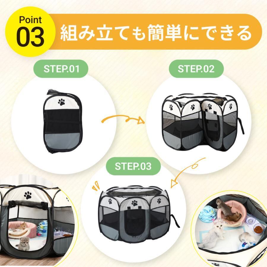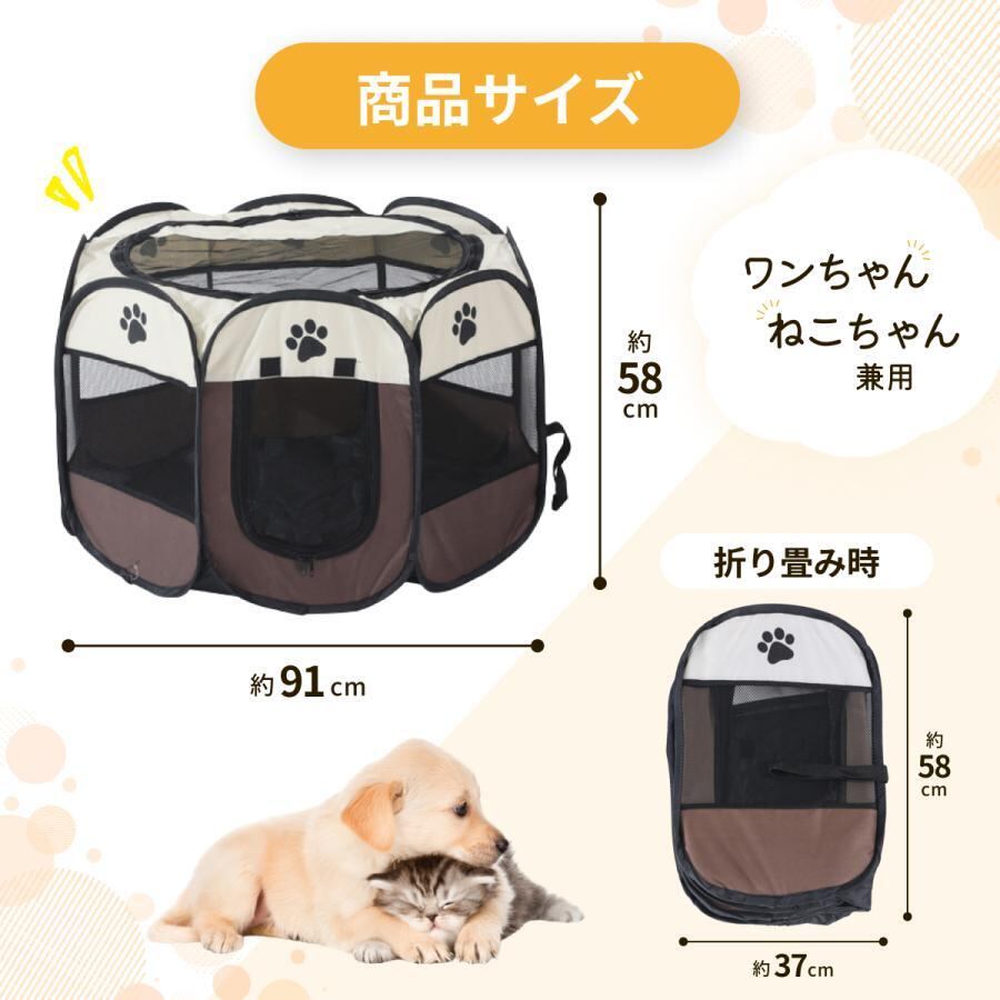 折りたたみ式のペットサークルで、どこでも簡単に設置できます。