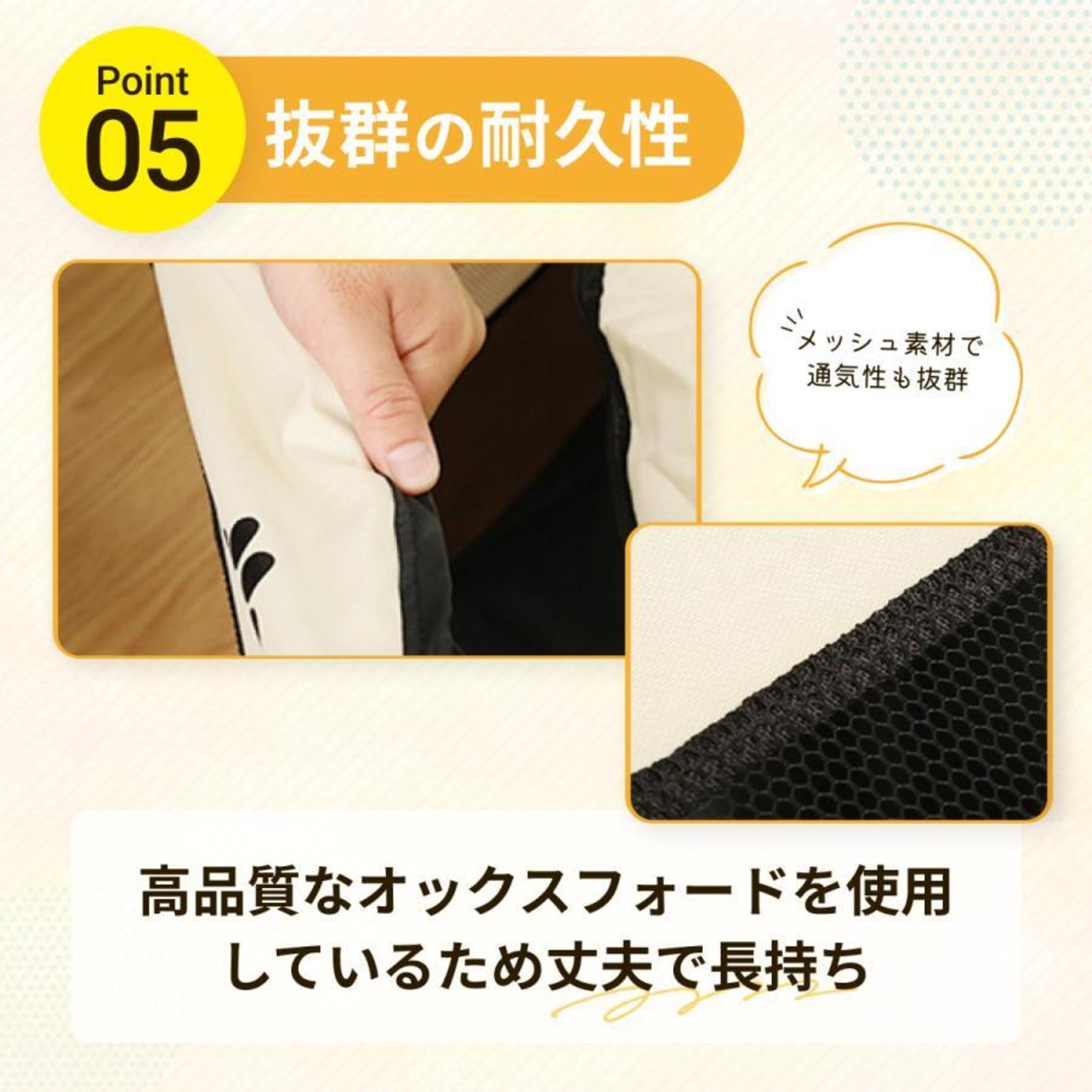 丈夫なメッシュ素材を使用しており、通気性が良くペットが快適に過ごせます。
