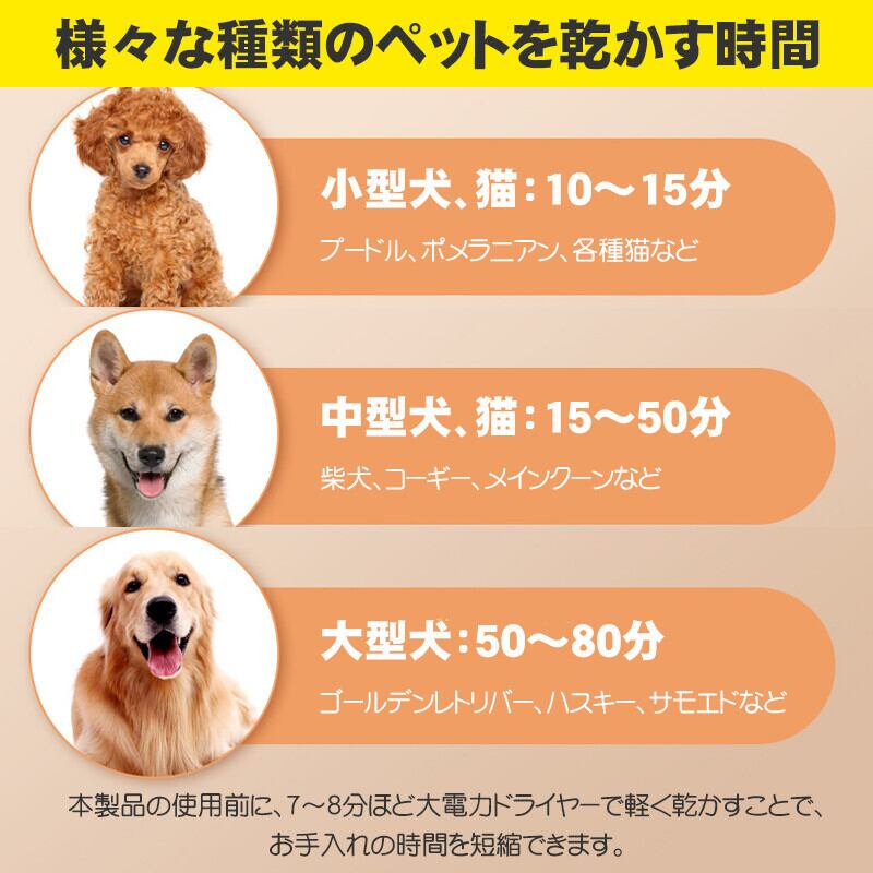 乾燥と同時にペットの毛を簡単に梳かすことができ、ペットの毛をフワフワで滑らかにし、抜け毛のお手入れも簡単に行えます。