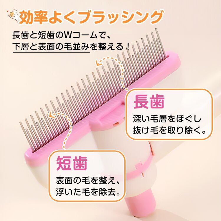 ■長歯と短歯で下層と表面の毛をブラッシング