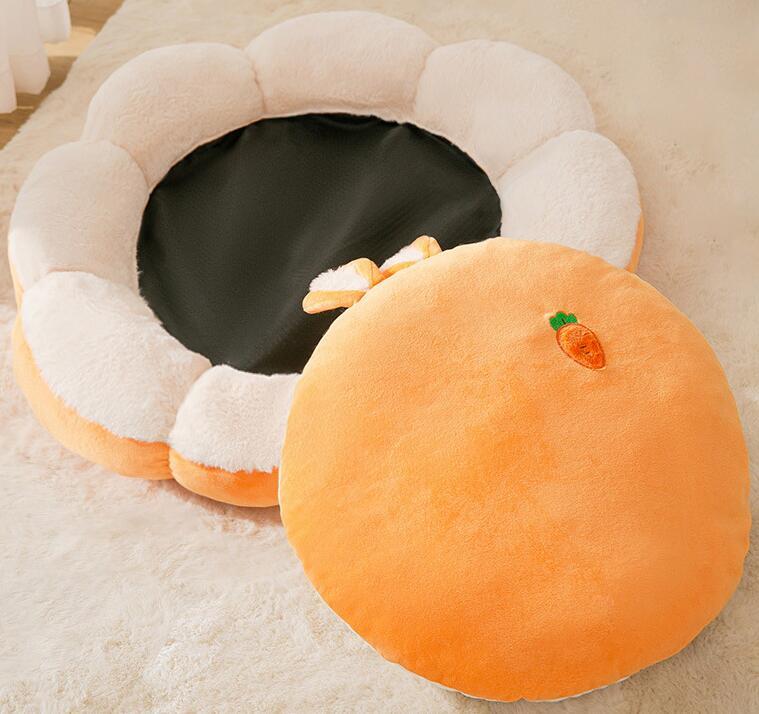 可愛らしいオレンジ色のベッドです。
