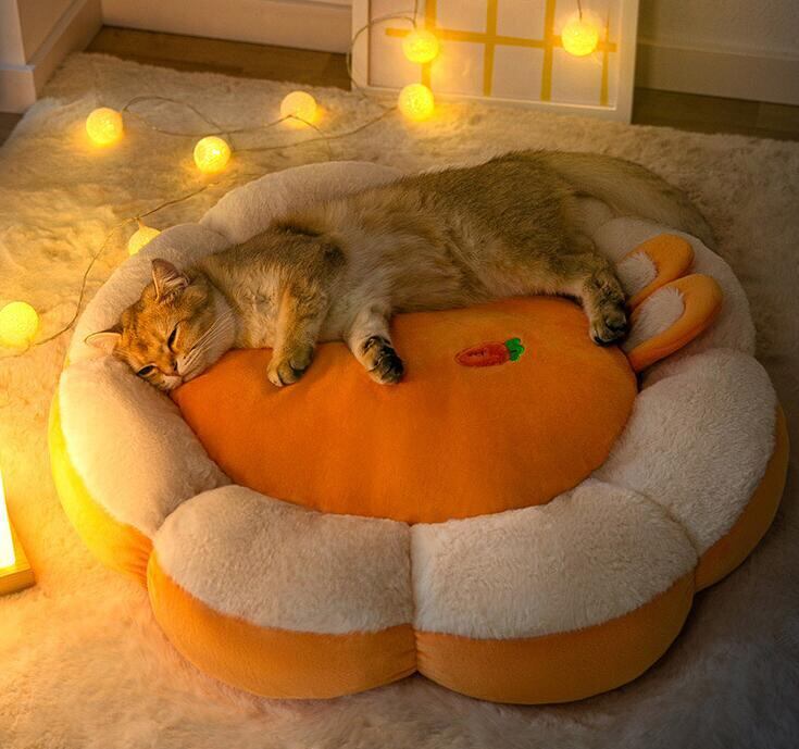 可愛らしいオレンジ色のベッドです。