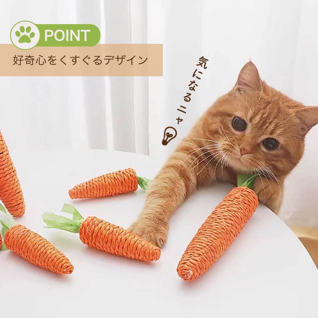 振るとカラカラと音が鳴り、猫ちゃんの好奇心をくすぐる人参の形のおもちゃです!