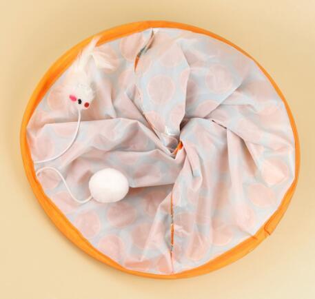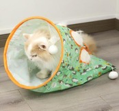 折りたたみ可能で、猫が隠れたり遊んだりできるトンネル型のおもちゃです。
