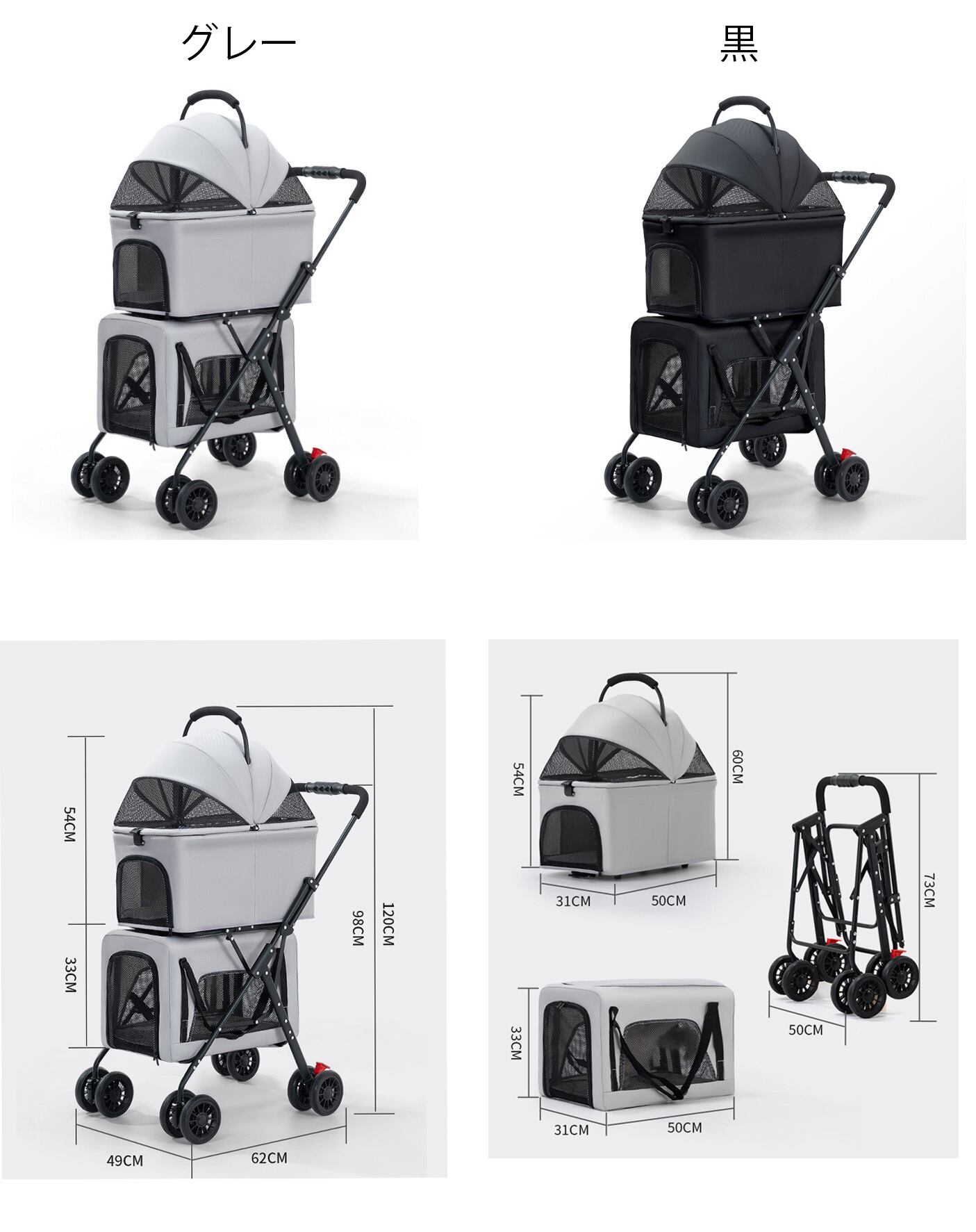 ・二段式分離型ペットカートで多頭飼いのご家庭におすすめ。