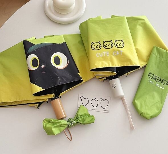 晴雨兼用 折り畳み傘 グリーン黒猫
