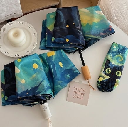 晴雨兼用 折り畳み傘 ブルー黒猫
