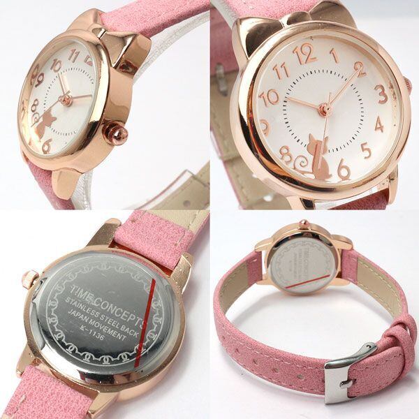 猫耳付き レディースリストウォッチ ピンクゴールド