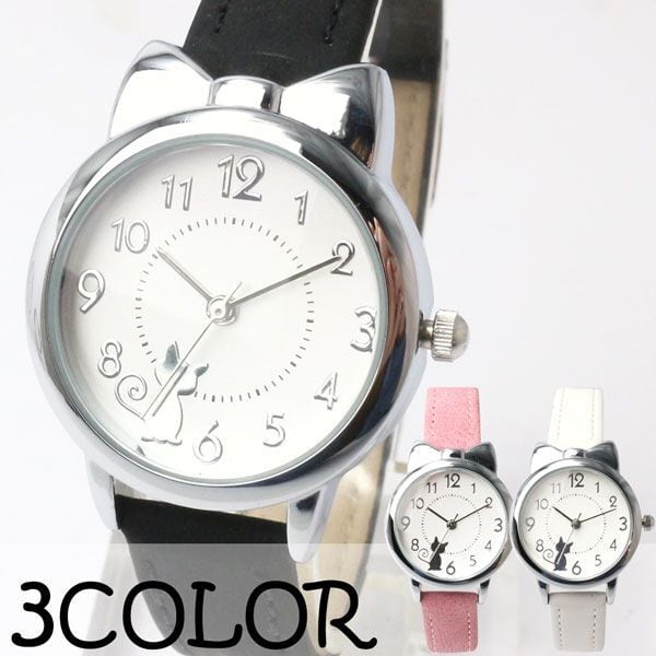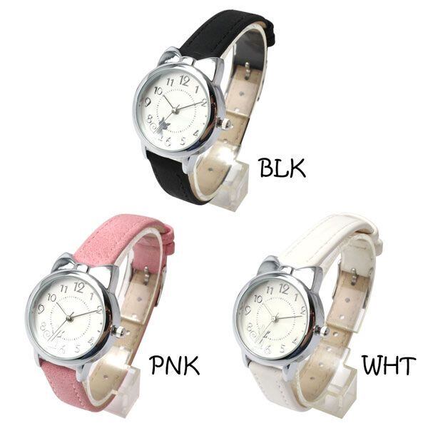 猫耳付き レディースリストウォッチ シルバー