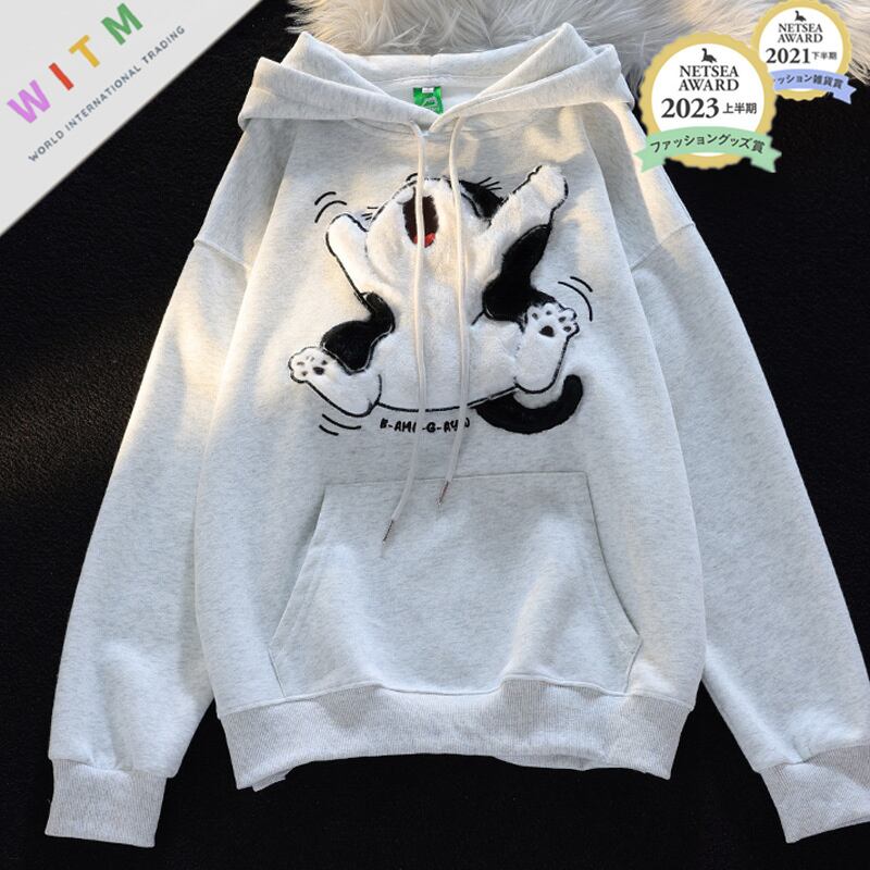 可愛いバンザイをした猫ちゃん柄の長袖パーカーです!