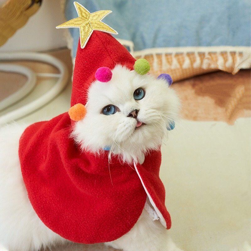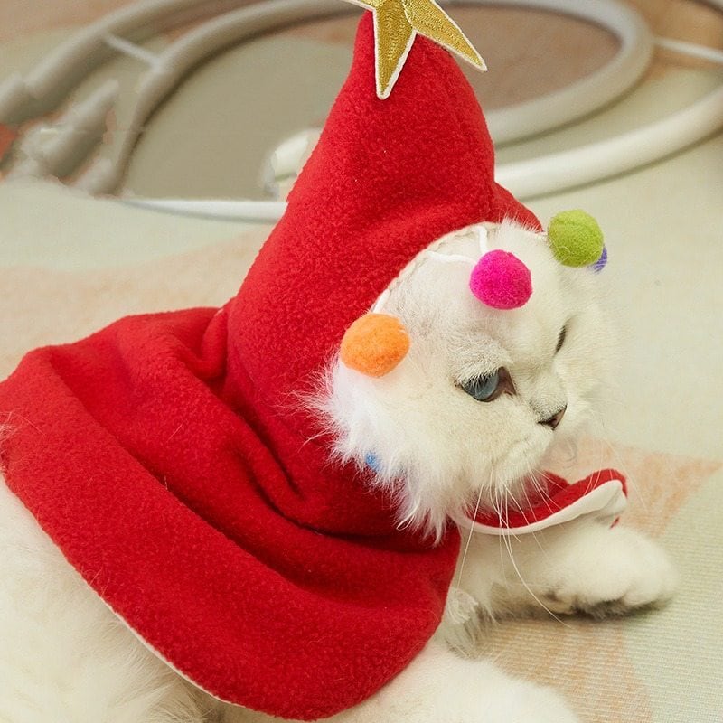 猫ちゃん用クリスマスにピッタリなフードの付いたケープです