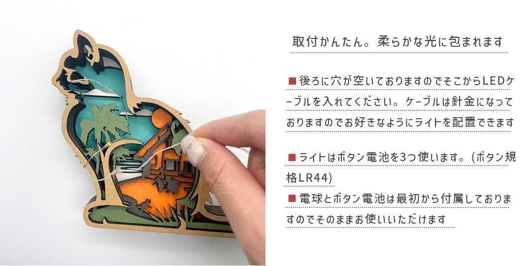 *後ろに穴が空いておりますのでそこからLEDケーブルを入れてください。ケーブルは針金になっておりますのでお好きなようにライトを配置できます