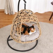 程よい揺れを楽しめるハンギングチェアはペットにとっても癒しのアイテム。