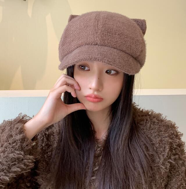 可愛い猫耳付き暖か生地のキャスケットで冬のオシャレを楽しみましょう♪