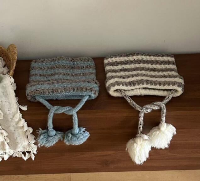 シンプルなボーダーデザインに、愛らしい猫耳とボンボンがアクセントとなり、コーディネートを一層引き立てます♪