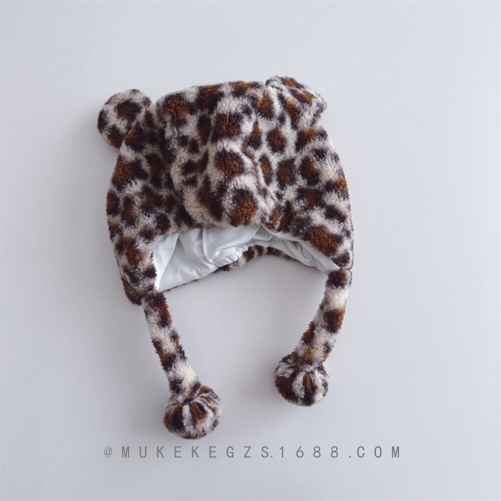 kids ふわふわレオパード柄アニマルキャップ
