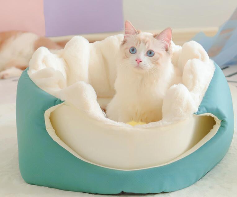 包み込む安心感: ぐるりと囲んだ高反発のフチが、愛猫が丸まって寝るのに最適。