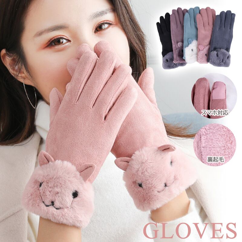 ☆ネコ好きさん必見!裏起毛&スマホ対応 あったか手袋