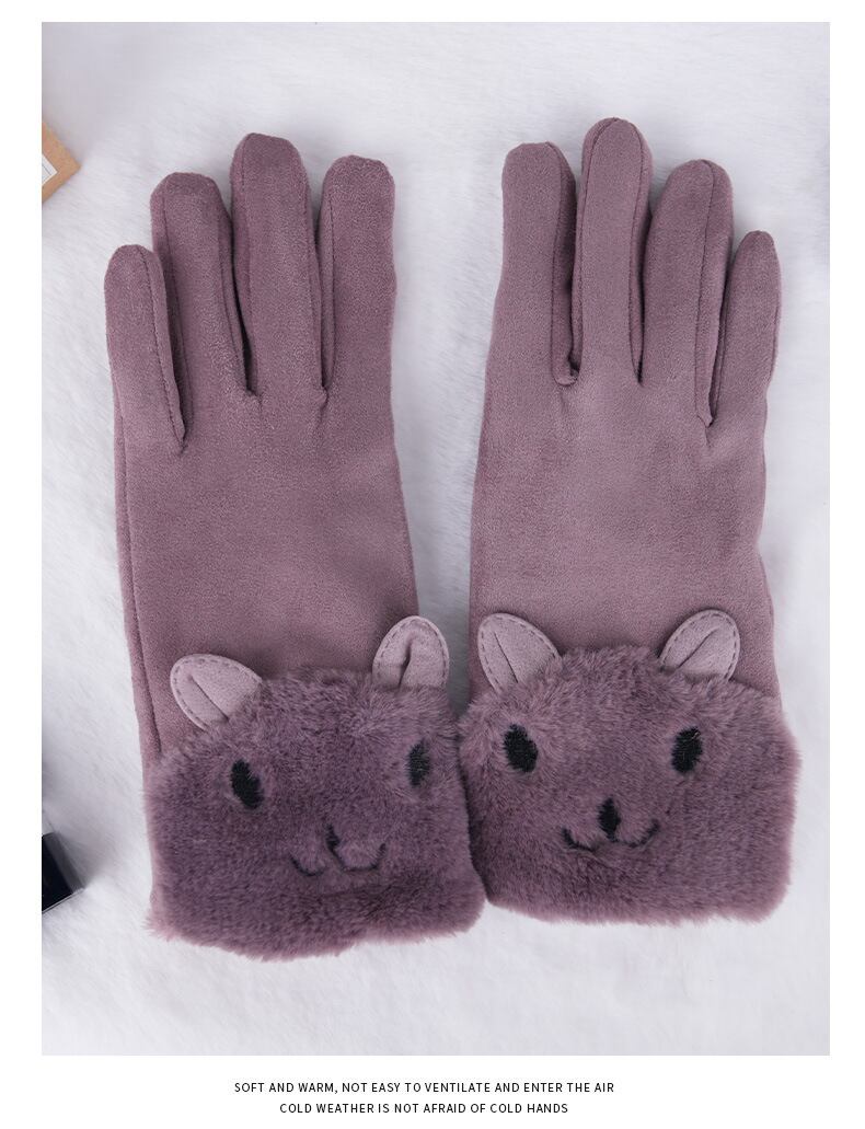 手袋の内側は、保温性の高いふわふわの裏起毛素材で、指先までしっかり包み込みます。
