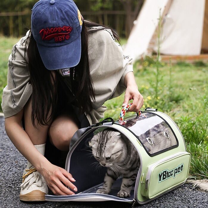 上部の透明な窓から、移動中でもペットの様子がいつでも確認できます。また、ペットも外の景色を楽しめ、移動中の不安を軽減します。