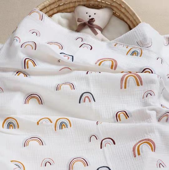 デリケートな赤ちゃんの肌を優しく守る、上質なコットン混素材の4層ガーゼタオルです。
