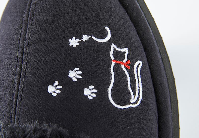 *素朴なライン表現のネコちゃんの刺しゅう付き。