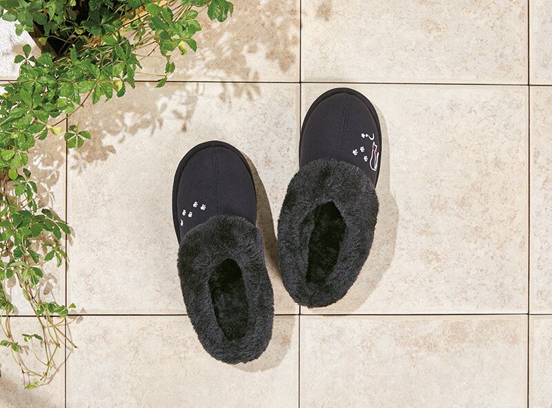 *甲入口にボアをあしらい、見た目もあたたかいサンダル。