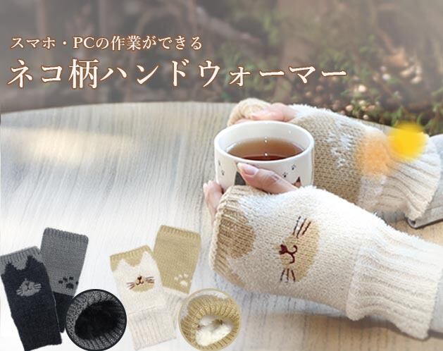 ★ネコ刺しゅう柄のハンドウォーマー!