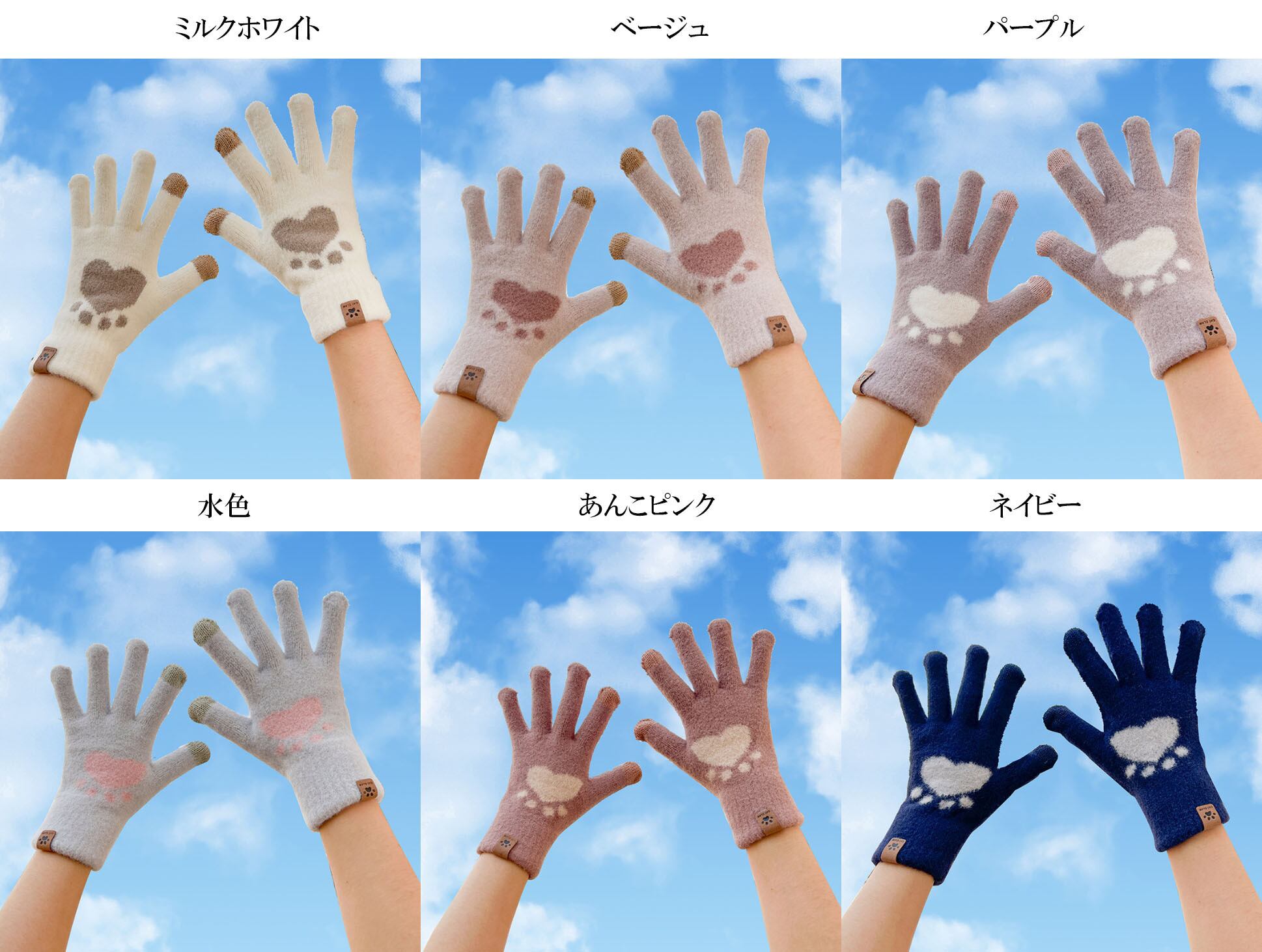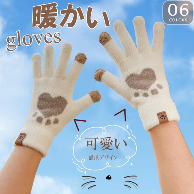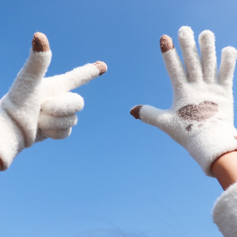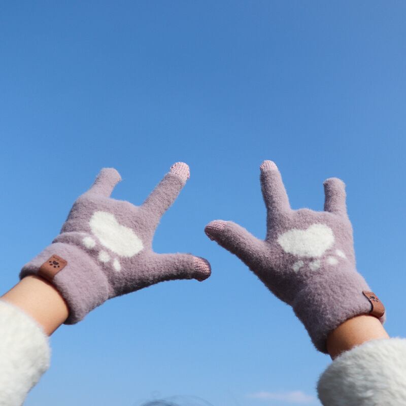 スマホが使える 裏起毛ニット手袋 肉球