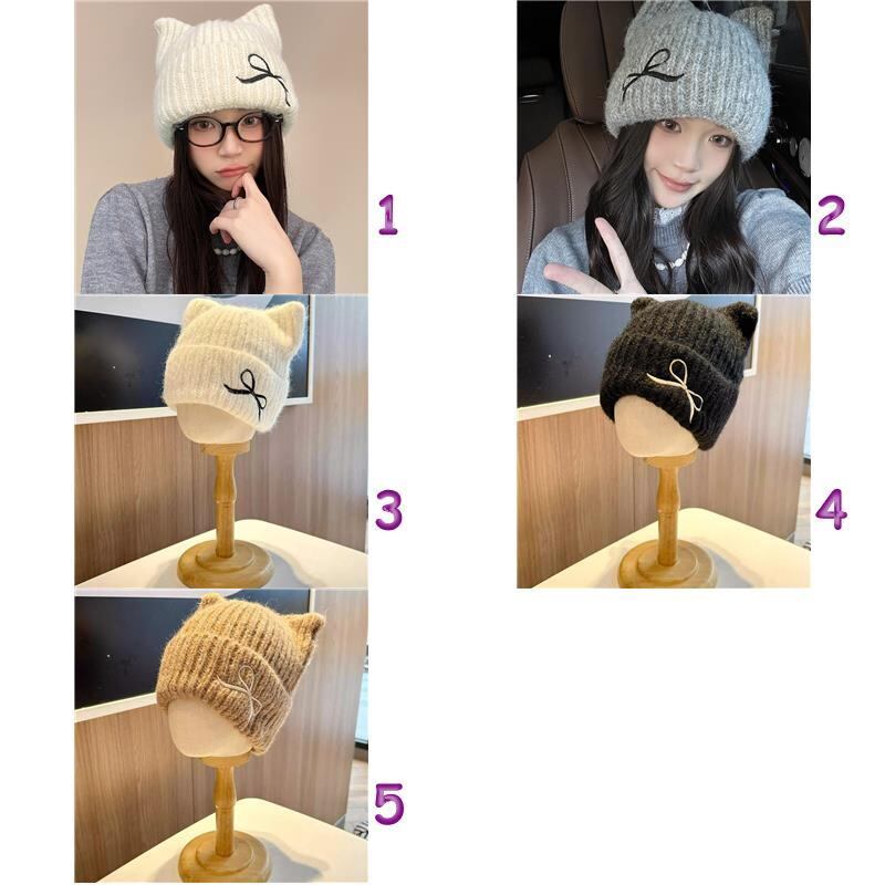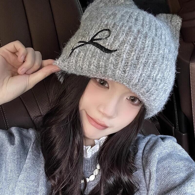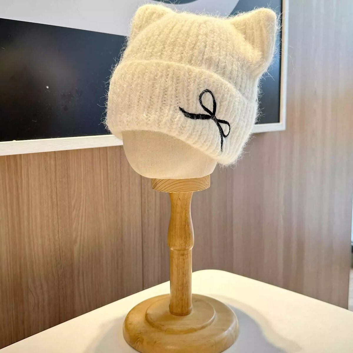 ✨可愛さとあたたかさを両立!リボン刺繍の猫耳ニット帽